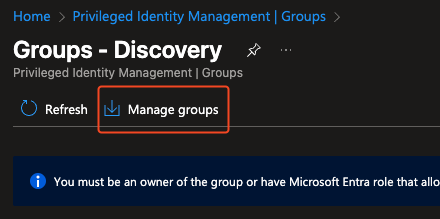 - Have the user navigate to the Microsoft Entra admin center > ID Governance > Privileged Identity Management > My roles > Groups.