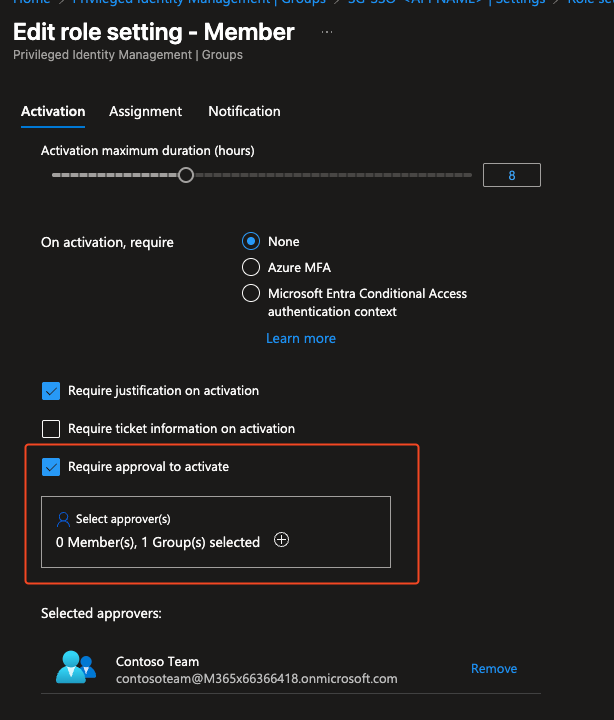 With this setting enabled, whenever a user requests to activate their privileged access, an approval request will be sent to the designated approvers. The user will not gain access until the request is approved. This workflow creates an important check-and-balance system for your administrative tasks.
