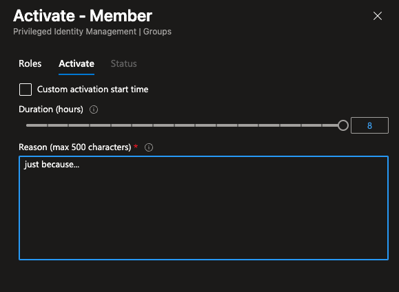 Once onboarded, configure the activation settings for the “Member” role of your security group. These settings define how users activate their privileged access.