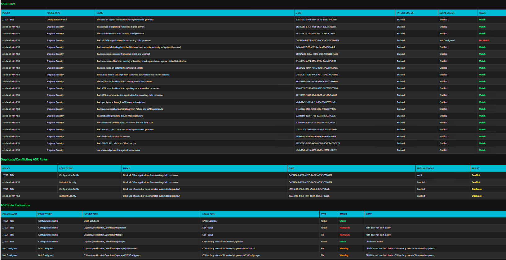 ASR Rule Inspector V2 aims to make your life just a little bit easier (and your compliance checks a lot more accurate). Whether you’re troubleshooting, auditing, or just trying to get a better handle on your ASR and CFA setup, this tool gives you a solid starting point.